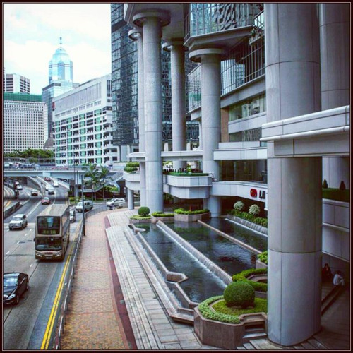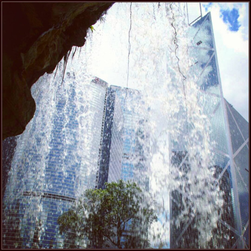 Skyscraper from behind a wall of water