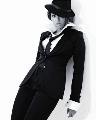 doppio petto è bianca così come i pantaloni, la camicia di seta è fantasia e la