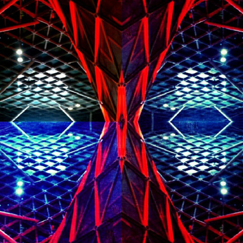 He goes past the column that marks the end of the dancefloor and heads down the corridor splattered with handprints and red LED lights swirling around them. A multitude of dots dart around crazily and penetrate his eyes, stunning him for a moment.