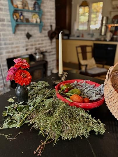 I made room for the “apothecary” — my herbal remedies, some from the garden, yard, and lane, and some boughten: