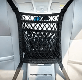But I don’t like it in the back seat (how will I reach my sunglasses or lip gloss?). If it’s on the console, it slides back and dumps its contents on the floor. I don’t know why they can’t make that thing with a lip of some sort…