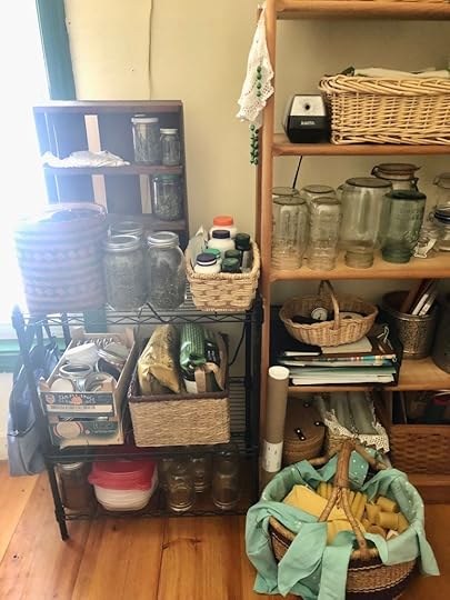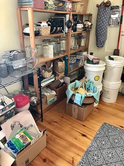 I thought you might like to see some progress on making the pantry just a pantry, in the spirit of last week’s “visualizing curated abundance” post. If I want to have abundant (but not excessive and wasteful) food stores and items I need for the two of us with the thought of possible interruptions in the supply chain and our ability to get out in bad weather, as well as for generous hospitality, I have to revisit this area and get it in order.