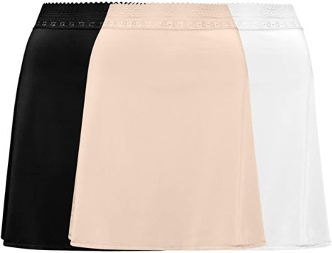 You can usually find nice ones at thrift stores, so you don’t even have to spend much on them. Have one that is just above your knees so it doesn’t show with a knee-length skirt, one midi one, and one longer one for your holiday maxi-skirt that will wrap around your ankles if you don’t have it. I also like having one midi one with a slit to wear under a pencil skirt with its own slit.