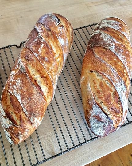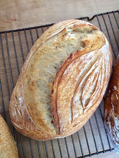 Here are close-ups of my normal sourdough loaves, turned out of their respective bannetons and baked as usual. (My bannetons are all of slightly different sizes because I got one as a gift and then added as I was further into sourdough baking, and it sort of makes my OCD twitchy but there it is.)