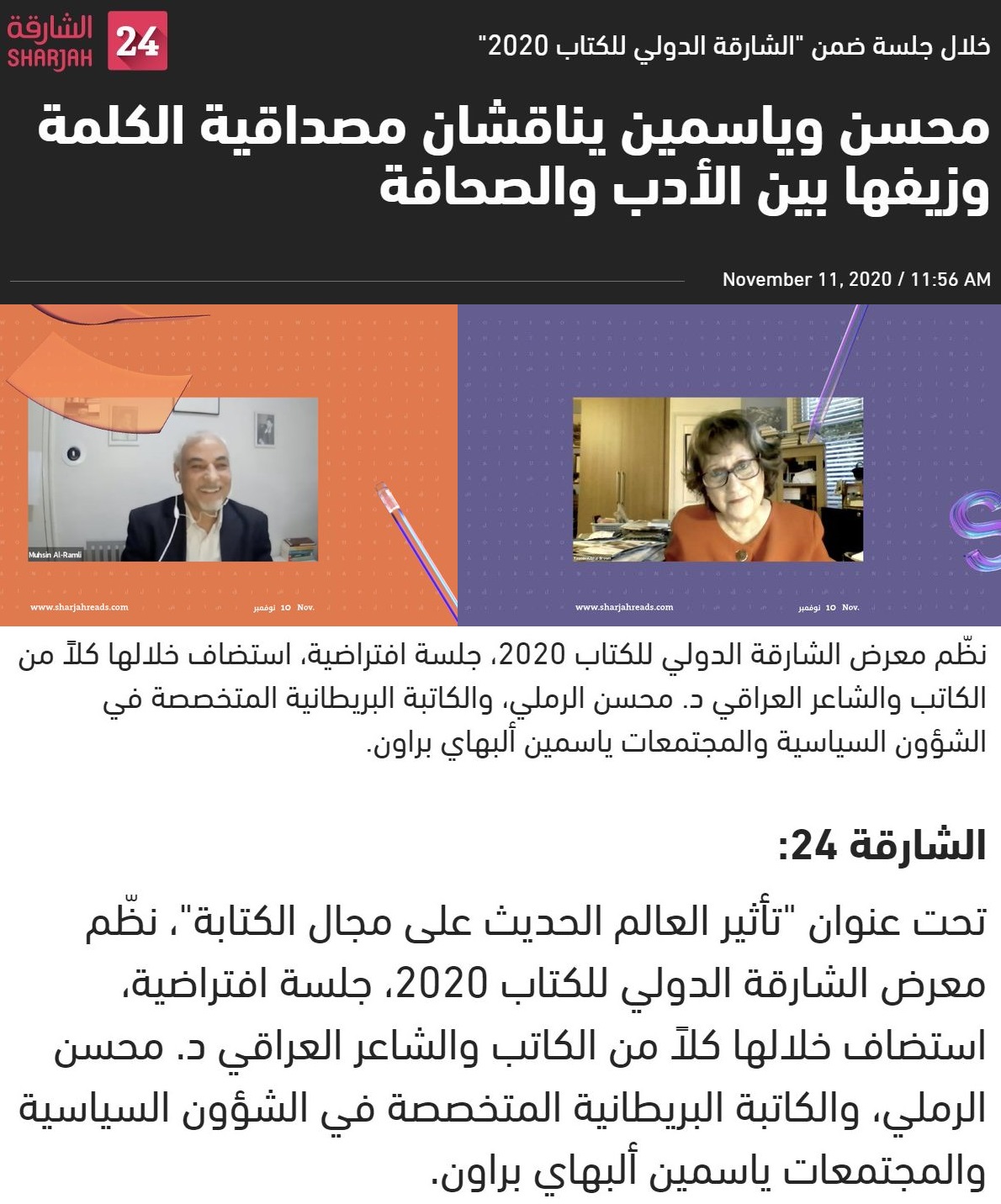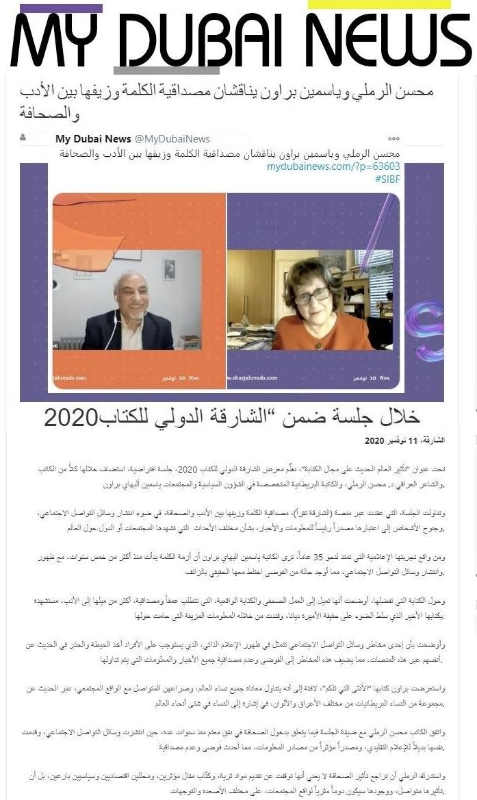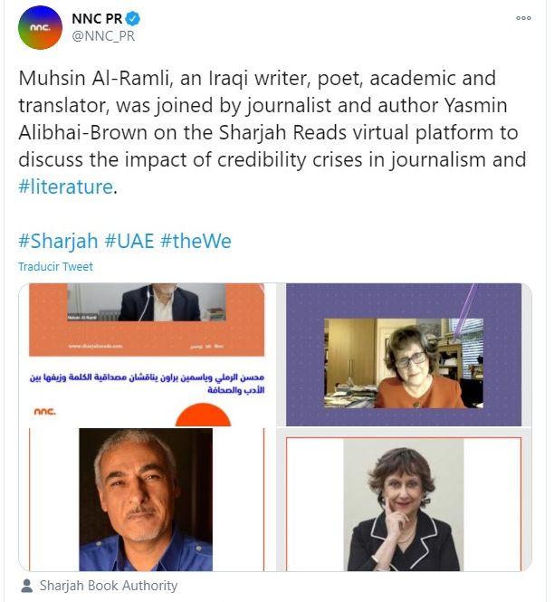 Al Ramli was joined by journalist and author Yasmin Alibhai-Brown on the ‘Sharjah Reads’ virtual platform and the session was moderated by Eman Al Yousef who raised the topic of a credibility crisis impacting both journalism and literature today.