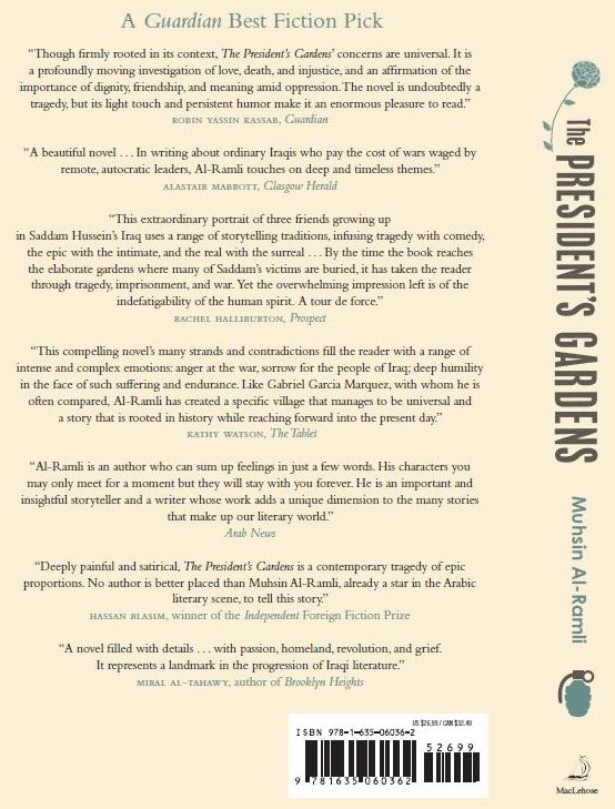 ABOUT THE AUTHORMuhsin Al-Ramli was born in the village of Sudara, northern Iraq, in 1967. Since 1995 he has lived in Madrid, Spain, where he has published 11 works – collections of short stories, novels, a play, essays and poetry, in addition to translating some Spanish classics into Arabic, most notably Don Quixote, and co-founding Alwaha literary magazine. He has a PhD in Philosophy and Spanish Literature from the Autonomous University of Madrid (2003), and teaches at the Saint Louis University, Madrid.His three novels to date are all translated into English: the first, Scattered Crumbs,translated by Yasmeen Hanoosh, won the Arkansas Manuscript Translation Award; the second, Dates on My Fingers, and third, The President's Gardens, were both translated by Luke Leafgren, with both their Arabic originals being longlisted for the International Prize for Arabic Fiction (IPAF, aka Arabic Booker Prize) in 2009 and 2013 respectively. His novel-in-progress, Qisma's Fate, a follow-up to The President's Gardens, and also being translated by Luke Leafgren, is due out later this year.Muhsin Al-Ramli writes on the MacLehose Press website about how he came to start writing the book in 2006. "I began writing The President's Gardens in 2006 after receiving the news of the murder of nine of my relatives, who were fasting on the third day of Ramadan. The people of the village found only their heads in banana crates, along with their identity cards. I dedicated the novel to their souls. It was a huge shock to me. It horrified me, and, to start with, the novel was a reaction to this event undertaken without planning or a clear vision."To continue, go to this link: https://www.maclehosepress.com/blog/2018/4/5/muhsin-Al-Ramli-why-i-wrote-the-presidents-gardens