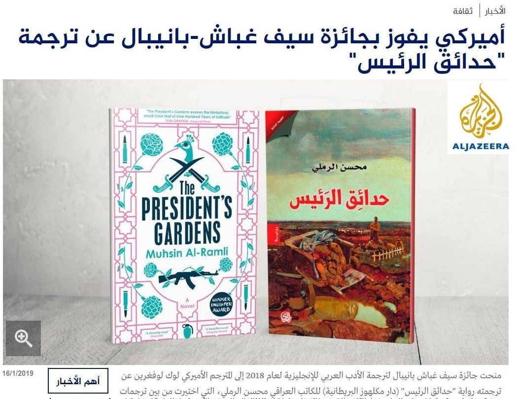 The translated novel The President's Gardens has already been much reviewed and talked about since publication in 2017. Its Arabic original sold well and was longlisted for the International Prize for Arabic Fiction in 2013. It also has a Spanish edition Los Jardines Del Presidente.