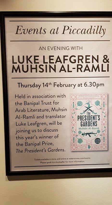 • AN EVENING WITH LUKE LEAFGREN AND MUHSIN AL-RAMLIDiscussions, Readings and Q&A ............... and refreshments6.30pm Thursday 14 February, Lower Ground Reception, Waterstones Piccadilly, London W1V 9LW