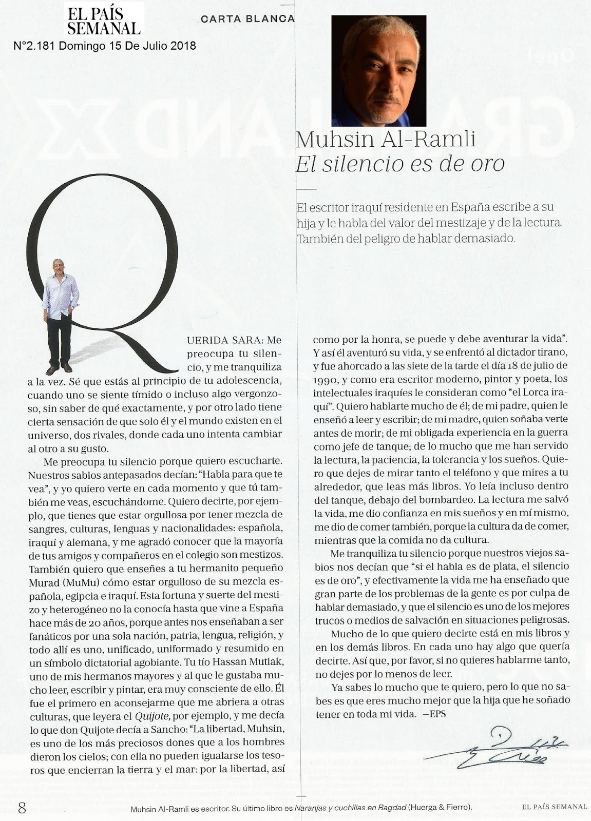 CARTA BLANCA El silencio es de oro Muhsin Al-Ramli