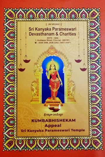 Arya Vysyas in Chennai are privileged to have a 300-year old Temple dedicated to our Kuladevatha – Vasavimatha. This Kanyaka Parameswari Temple was established in 1720, and the Sri Kanyaka Parameswari Devasthanam & Charities, which manages it, was established in 1896.