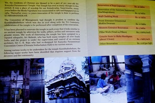 According to the pamphlet, the Temple management says that they are planning to renovate the Temple in such a way that it looks similar to an ancient Temple. They have taken up various other works for the Temple Kumbabhishekam, and you can find information on some of them in the above and below images.