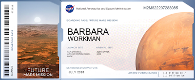 NASA is collecting names to include on its July 2026 launch to Mars. When you enter a name and email address, you can download and print a Boarding Pass for the Mars mission.