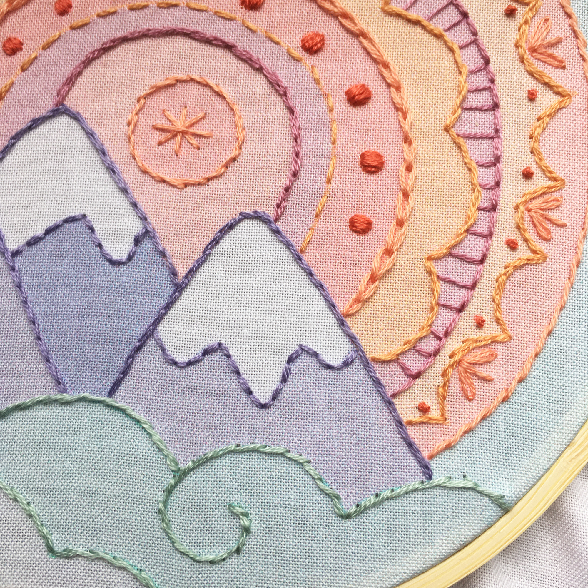 Are you ready for a Mountain Rainbow embroidery adventure? This new sampler has just landed in the shop and it's one of my favorites. As much as I love thread painting and tiny stitchy details, I really love simpler designs like this where I can just follow the lines with my favorite stitches and create something lovely. It's so relaxing and meditative, I know you'll love it too.