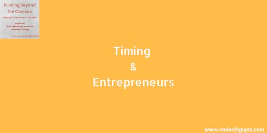 Premise: One of the things that a lot of entrepreneurs who failed in their first attempt at starting and running their enterprise attribute their failure to is – Timing. They complain that their timing was wrong. They were much ahead of time. The users or customers were not mature enough to adopt their product or service.