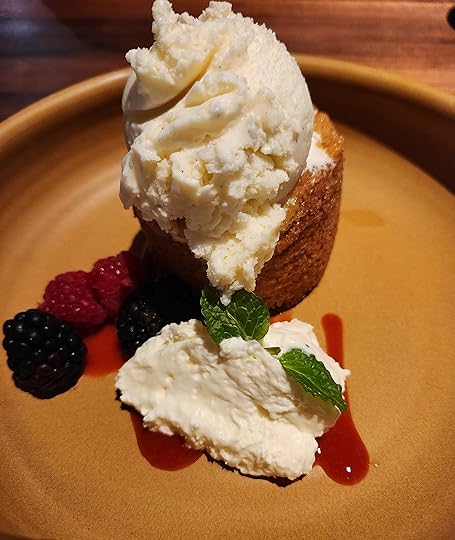 I take in sweets on a limited basis: The occasional splurge on bag of mini-chocolates and gummies, a delicious oatmeal rasin cookie now and then, and ice cream maybe 4-5 times per year; but we don’t do dessert at our home often, nor out much, so my sugar (which my Zyprexa keeps borderline diabetic), is probably reasonably okay.