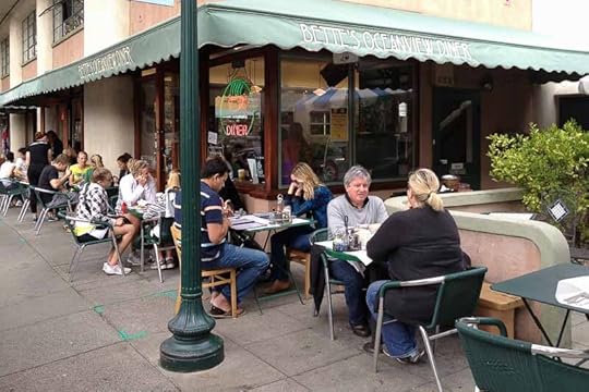 We’d planned to maybe get lunch in Oakland, but the water-bottle set us back on time, so we went over to 4th Street in Berkeley, found some decent free parking and walked to the Oceanview Diner (formerly Bette’s Oceanview Diner, pre-COVID). The wait was not bad for the popular eatery, and we go seated in about fifteen minutes, at a quieter table outside. I can shout with some of my family there, but with mom, it was nicer outside.