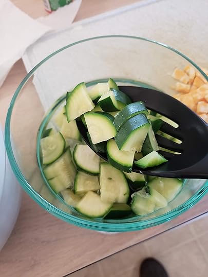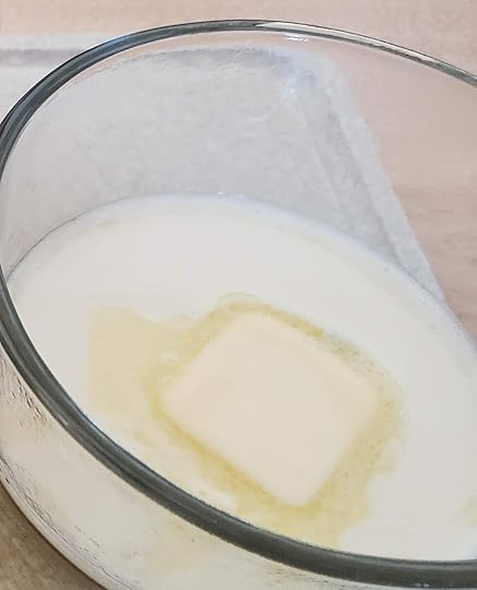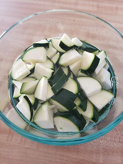 Zucchini before steaming3. Place butter in milk, and microwave 30 seconds, then add to mixing bowl