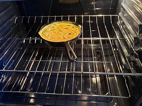 2I don’t recommend cooking a fritatta wholly in the oven; if it spills before coalescing, you’ll have an awful mess to clean up.