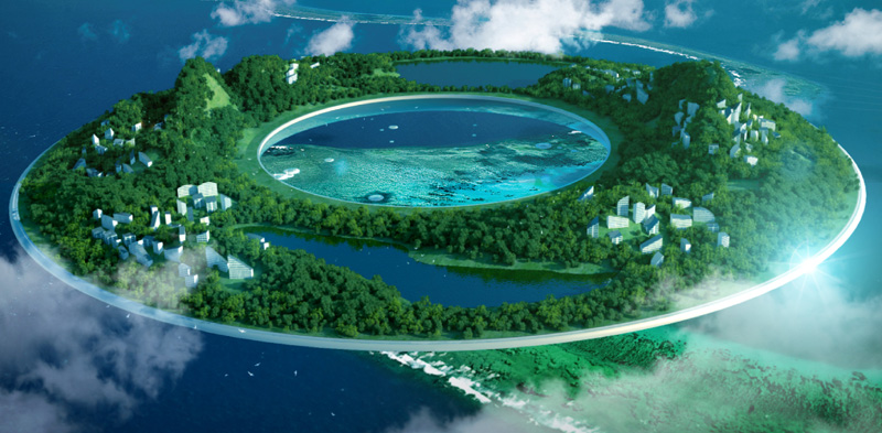 Imagine the lily pad and ocean below, the pillars in the distance.
