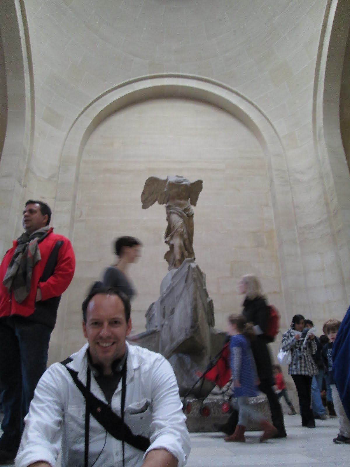 Winged Victory.What is clear is this: I don't care if it's econo or business, I don't mind if the Germans snore. I just want to see the Winged Victory in the Louvre again and write for a day in a café like Les Deux Magots. And if I can give my friend a tour of a city I love while on this justifiable journey of writing, then so be it. Let's roll the dice and see what the roulette wheel says. As long as my nefarious pants don't foil this scheme, and that second Cinnabon doesn't thwart my plans, I'll be in Paris next week.