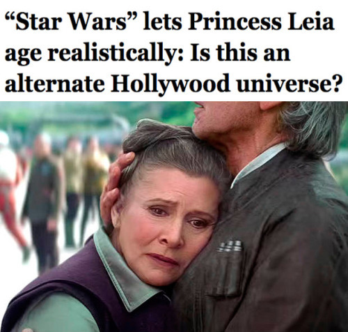Carrie Fisher’s older and wiser character tells us maybe we’re ready to let actresses ageThe most breathtaking moment in the new trailer for “Star Wars: The Force Awakens” trailer doesn’t involve explosions or lightsabers or ominous references to the Dark Side. It’s an eyeblink-long shot of Princess Leia herself, Carrie Fisher, in the embrace of Harrison Ford’s Han Solo. It’s a moment of a weary-looking woman with graying hair and lines on her face. Holy science fiction, Hollywood — somewhere, in a galaxy far, far away, a grown woman has been given permission to look like a grown woman. I want to go to that planet!