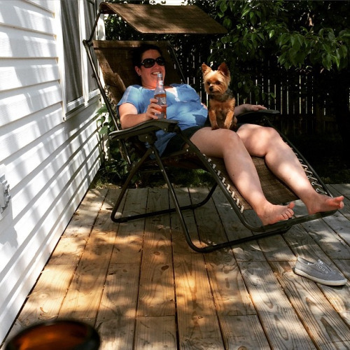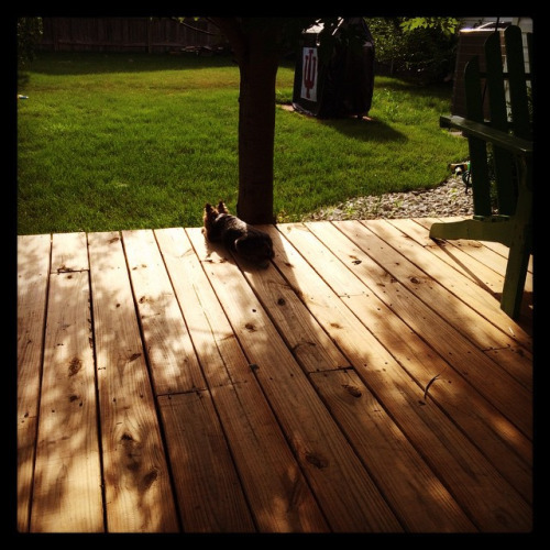 Enjoying the evening sun. #dog #yorkie #deck #sun