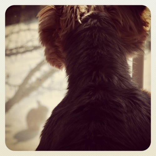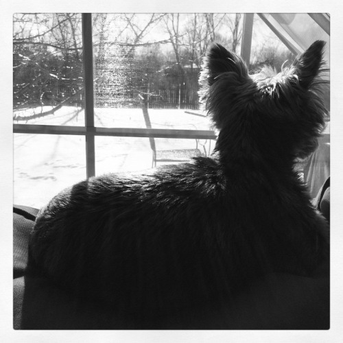 The other day, #Kiki went nuts at the window. I found this as the cause. The #rabbit had the gall to sit there chewing and ignoring the barking. #dog #bunny