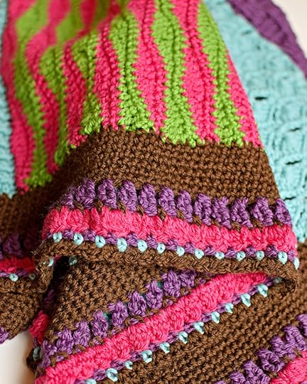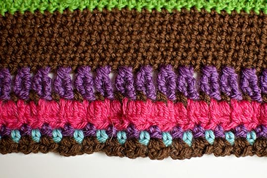 I did use EVERY color in the border, But mainly I used the main color (in the sample that is brown). Once again, noticing that baby toys and such tend to be really bright colors I thought adding this really visually appealing stitch was just PERFECT for this baby blanket. This pattern teaches you about working increases in the corners and working a border in the round