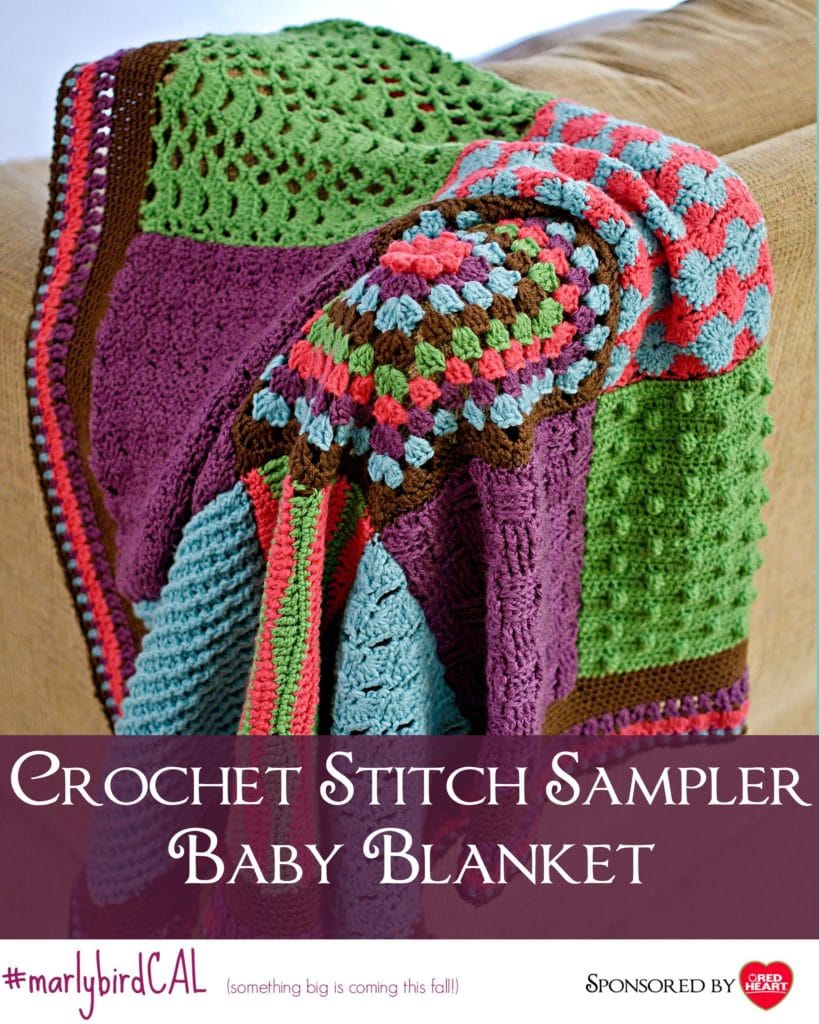 The Crochet Stitch Sampler Baby Blanket Crochet-along is sponsored by Red Heart and hosted by Marly Bird.