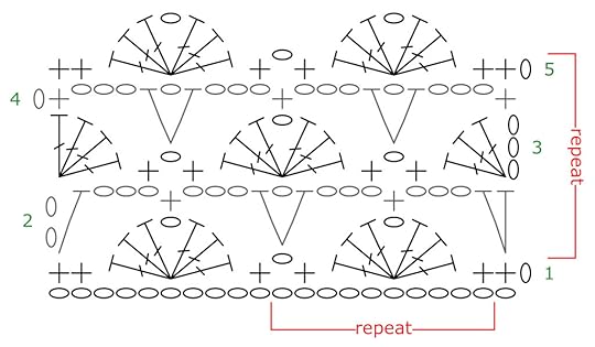 If you wan to use this pattern stitch for another pattern you need to know how many chains are used for the foundation. For the Fan Tail–Foundation chain is a multiple of 10 + 2 sts.