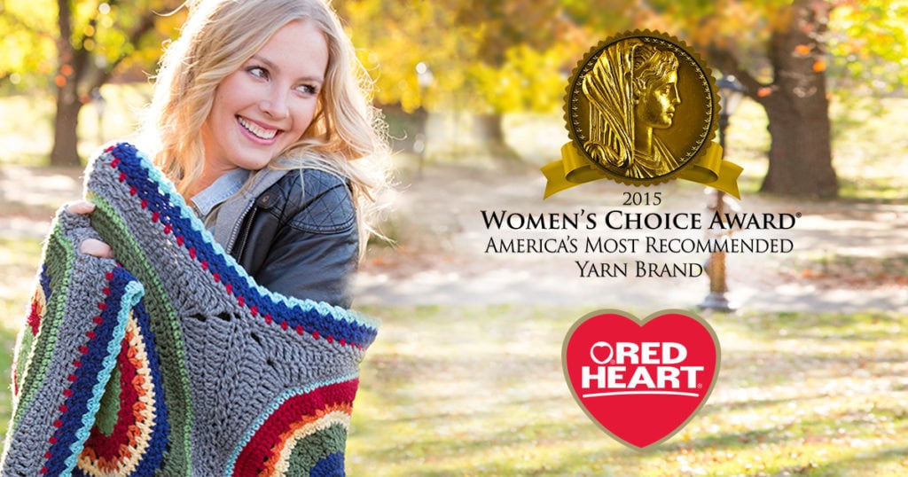 I’ve learned over the last 20 years crocheting that many of us began working with a basic hook or needles and a skein of Red Heart Yarn. Their commitment to provide wonderful yarn and pattern support to both the crochet and knitting community makes it no surprise that they were given the Women’s Choice Award for America’s Most Recommended Yarn Brand.