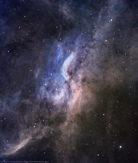 The “Propeller Nebula” in Cygnus (DWB 118). Imaging notes: 46 x 300-second exposures, 3nm Ha filter and 48 x 300-sec with the 3nm OIII filter, ZWO ASI1600MM-Pro monochrome camera cooled to -10C, 800mm f/4 Newtonian scope, Sky-Watcher EQ6-R Pro mount, William Optics 32mm/120mm FL guide scope + ZWO ASI290MM-Mini guide camera. More of my astro stuff here: https://SaltwaterWitch.com