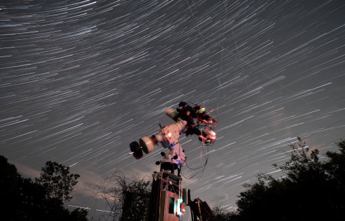 Several stacked frames from a set of time-lapse images I shot last week, showing my dual-scope setup, narrowband and RGB color.