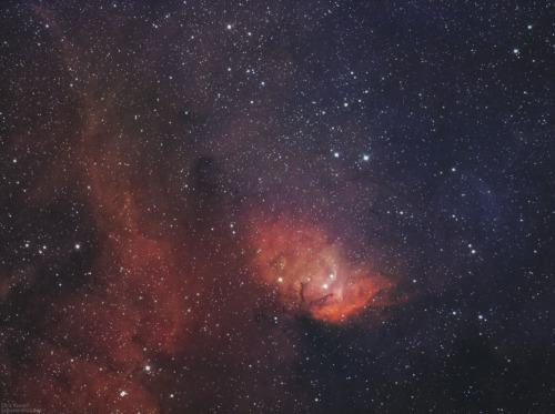 Another one from last week, the core of the Heart Nebula (IC 1805) in Ha+OIII with the star cluster, Melotte 15 surrounding coils and branches of interstellar dust and gas. Gear notes: I captured all the data in my backyard with an Apertura 800mm f/4 Newtonian OTA, ZWO ASI1600MM-Pro mono camera, Antlia 3nm filters, ZWO ASI290M OAG, on the Sky-Watcher EQ6R-Pro mount with the ZWO ASIAir Plus controller. More of my astro stuff: https://SaltwaterWitch.com