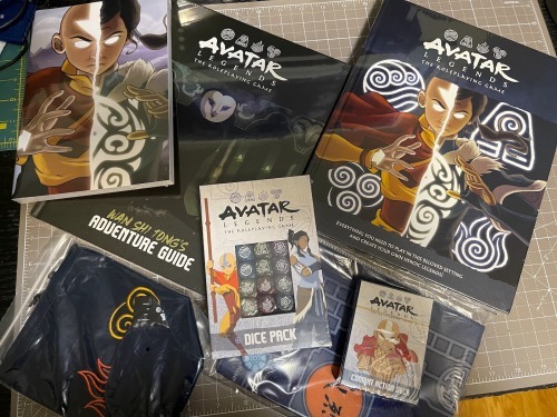 A heavy box of Kickstarter RPG goodness just showed up: Avatar Legends game books, dice, cards, maps and other cool stuff–all Powered by the Apocalypse #PbtA. Looking forward to digging into this and running it at some point. https://magpiegames.com/pages/avatarrpg