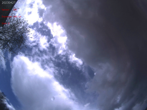 Just grabbed this shot from the AllSky cam in the backyard. Looks a bit turbulent out there this afternoon. Hoping for some clear sky tonight.