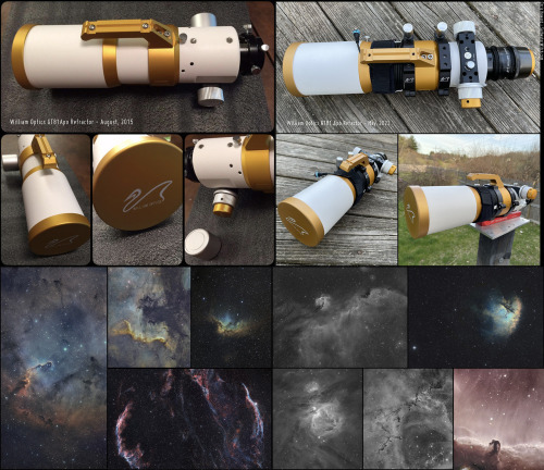 My William Optics GT81 Apochromatic triplet refractor, the day it arrived (left) and today (right)–that’s FPL-53 glass, 81mm aperture, 478mm focal length, 382mm at f/4.7 with the field flattener. I’ve been capturing the beautiful night sky with this awesome piece of hardware for nearly seven years. I bought it August 2015 and here we are in May 2022. I have captured hundreds of nebulae, galaxies, supernova remnants, and various phases of our moon. Over the last seven years I’ve captured the distant light of stars and emission nebulae in thousands of one, two, five, and ten-minute sub-exposures. Here’s to seven more. Thank you, William Optics!