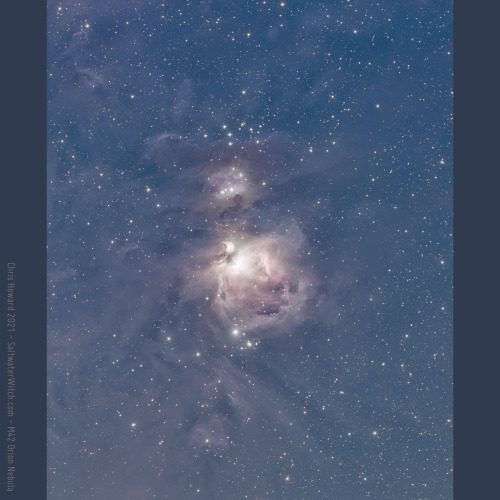 From last night’s imaging run: The Orion Nebula (M42) is one of my all-time favorite deep sky objects, and the Constellation Orion is in my top five places to go with a telescope. Imaging Notes: Ha+RGB, Ha: 55 x 240-second subs, color: 123 x 120-second subs stacked in DSS, processed in PSCC2022. William Optics SpaceCat51 Apo refractor, ZWO ASI071MC cooled color camera & ASI1600MM-Pro monochrome camera, Controller: INDI, Ekos, KStars.