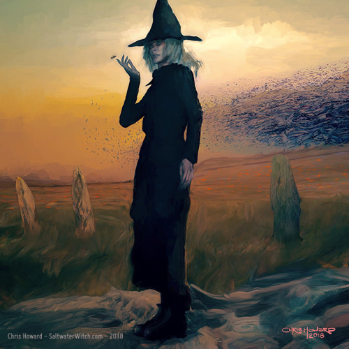 My favorite witch, and quite possibly my all-time favorite Terry Pratchett character, Esmerelda Weatherwax, ‘Esme’ as Nanny Ogg calls her, and 'Granny Weatherwax’ at some point to those living around Ramtops. She is said to embody all three roles in a coven (maiden, mother, and crone), and although she’s always pictured as the last, in the book Lords and Ladies, we get a glimpse of just how badass she was when she was younger. So for this study I wanted to paint her as she was in her mid-fifties, out for a stroll through a mountain meadow with her favorite swarm, at a time when she earned the name 'Aaoograha hoa’ from the trolls (She Who Must Be Avoided).