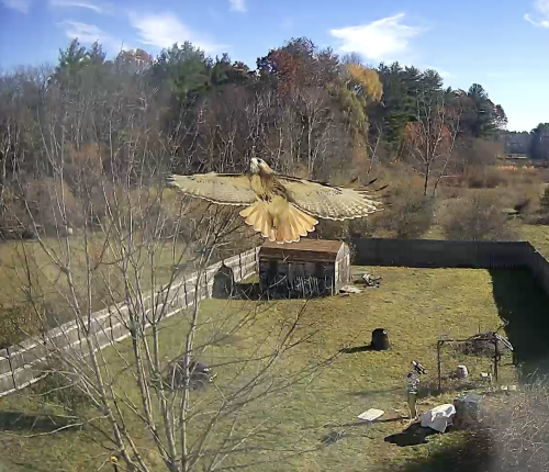 Nice shot from the backyard #Wyze cam of a Red-tailed Hawk visiting us this morning. You can see my new astro-imaging pier and set up in the lower right.