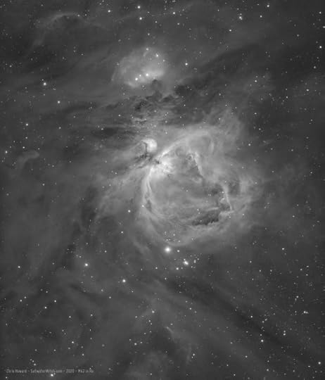 The Orion Nebula in Hydrogen-alpha - I have to capture M42, M43, NGC 1977, the Orion, De Mairan’s, and Running Man Nebulae at least once a year, and now through December is when the Constellation is high in the sky and still early enough be awake–I captured the 52 subs that went into this shot between 11:30 and 2am. This is just one filter’s worth. I have to go back and either take OIII and SII or Blue and Green, using this Ha capture for the Red channel in RGB.