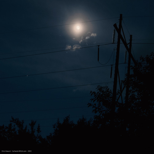 The Moon and Mars. (The planet Mars is that bright point of light that’s just touching one of the transmission lines to the left and lower than the moon).