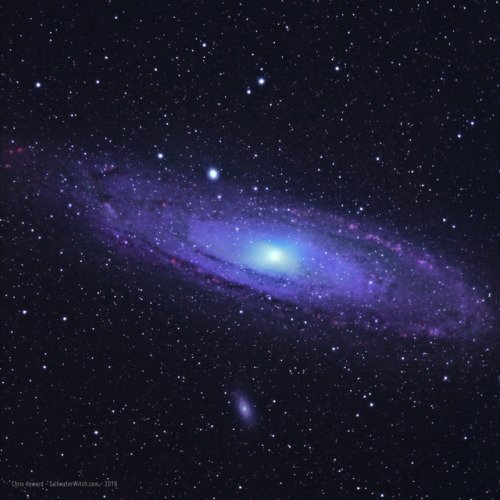 The Andromeda Galaxy (M31) is our largest and most magnificent galactic neighbor, about 2.5 million light-years away from earth (or 780 kiloparsecs if you’re of a more serious demeanor). Here’s my bi-color version in near-IR and hydrogen-alpha. With a 685nm IR longpass filter I have managed to get a ring in M110 (NGC 205) the dwarf elliptical galaxy and satellite of Andromeda (center bottom). Wasn’t expecting that. I will probably upgrade to the Astrodon Sloan Gen2 i’ (695 - 844nm) near IR filter at some point, but I’m happy so far with the much cheaper Optolong 685nm. https://SaltwaterWitch.com