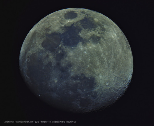 There’s a beautiful moon out tonight. I shot this with the Nikon D750 + AstroTech AT6RC 1350mm f/9. A nearly full moon always makes deep sky astrophotography difficult, but that’s when you pair a full frame DSLR with a 6" Ritchey-Chrétien. The rest of the sky can wait for the new moon. http://SaltwaterWitch.com