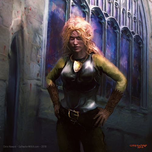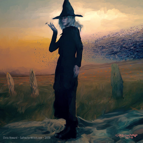 Granny Weatherwax: My favorite witch, and quite possibly my all-time favorite Terry Pratchett character, Esmerelda Weatherwax, “Esme” as Nanny Ogg calls her, and “Mistress Weatherwax” or “Granny Weatherwax” to those living around Ramtops. She is said to embody all three roles in a coven (maiden, mother, and crone), and although she’s always pictured as the last, in the book Lords and Ladies, we get a glimpse of just how badass she was when she was younger. So for this study I wanted to paint her as she was in her mid-fifties, out for a stroll through a mountain meadow with her favorite swarm, at a time when she earned the name “Aaoograha hoa” from the trolls (She Who Must Be Avoided).