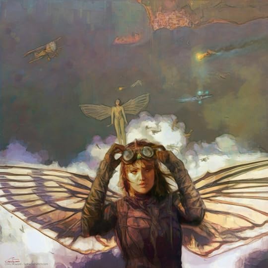 “Cloud War”, painted mostly in Art Rage. This is an old one from my art folder. I painted this 7 or 8 years ago for a story idea I was working on. I loved the fanciful mix of world war one biplane pilots dog fighting with dangerously powerful winged beings that threw grenades, and could even dive-bomb battleships. And who knows what other powers they have!