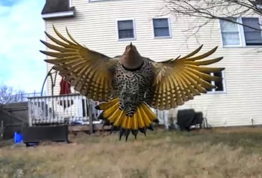 Northern Flicker taking flight (female, I believe), caught in motion by my AstroCam, the backyard…