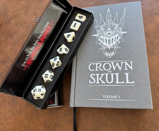 Christmas gift from my son, the beautiful hardbound Crown and Skull (volume 1) and a wonderfully chunky set of dice to go along with it.
