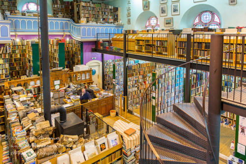 Leakey’s Bookshop, Inverness. Scotland’s second largest secondhand bookshop, with around 100,000 books. The building, dating back to 1793, used to be a Gaelic church, giving the shop two floors, high ceilings, and beautiful windows.
