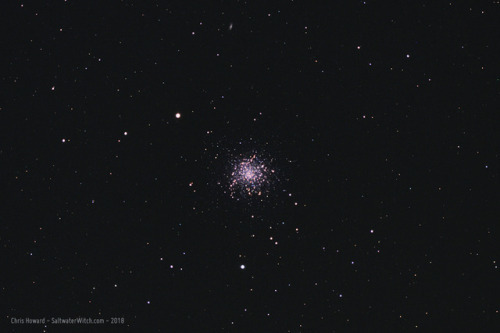 The Great (and wonderful) Globular Cluster in the constellation Hercules (M13) with a hint of the spiral galaxy NGC 6207 at the top. Last night was my first night out with the William Optics ZenithStar 61, and as I expected, it’s just a brilliant little refractor. Paired with the ZWO ASI071MC cooled camera and the WO 0.8x Flat/Reducer F6-A, you get a spectacular 4.7° × 3.1° field of view–that’s a big chunk of the sky. If you’re looking for a pretty fast widefield apochromatic, this is it. It’s not the best choice for the Hercules cluster, but I was just slewing all over the sky, waiting for the North America Nebula to get above 30 degrees.